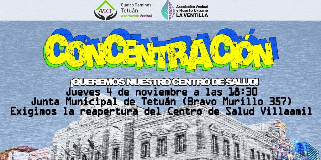 Las Asociaciones Vecinales de Tetuán se movilizaron desde el inicio para que esta situación tan grave se resuelva y tienen todo nuestro apoyo. Continúa con la Campaña de Recogida de Firmas para exigir soluciones a la Comunidad de Madrid, en la que también estamos colaborando. Los y las vecinas de Tetuán no nos rendimos.